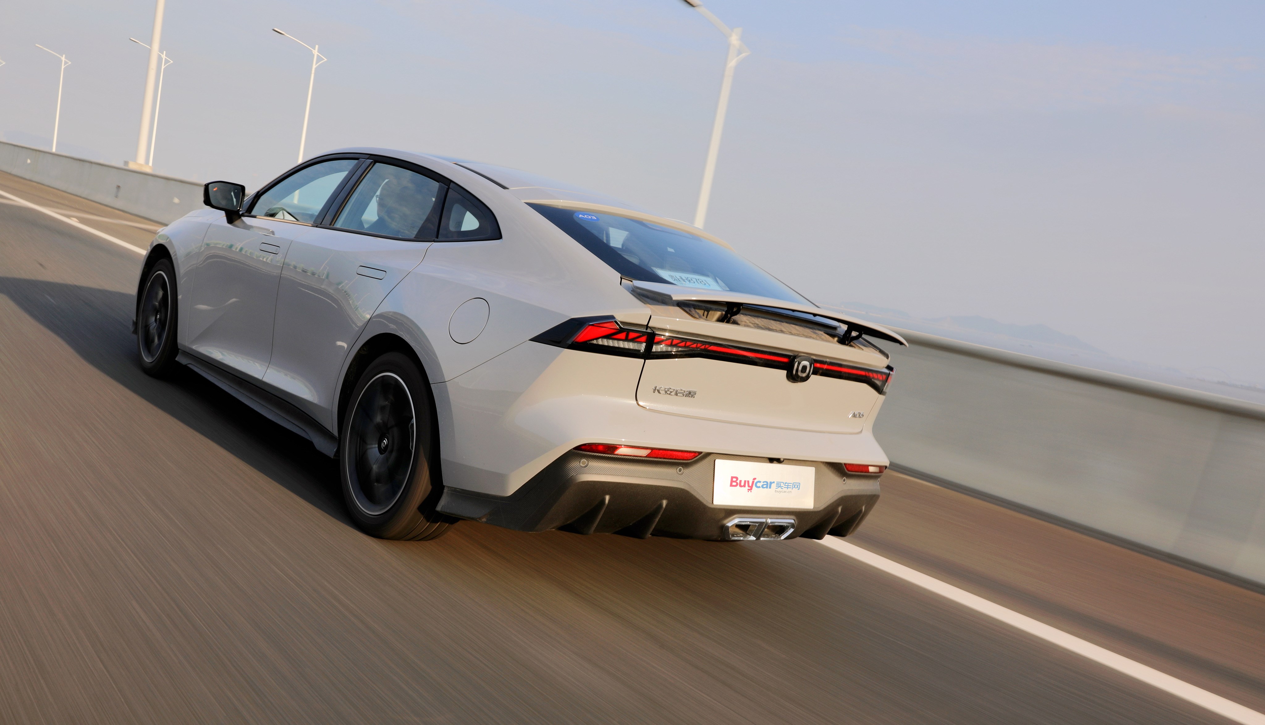 車尾配備貫穿式LED尾燈、空氣擴(kuò)散套件以及中出雙排尾喉,可電動升降的尾翼絕對算是加分項(xiàng),它不僅能夠幫助啟源A06呈現(xiàn)更戰(zhàn)斗姿態(tài),并且在行駛途中可為車輛提供最高25kg的下壓力,增加高速行駛時的車身穩(wěn)定性。