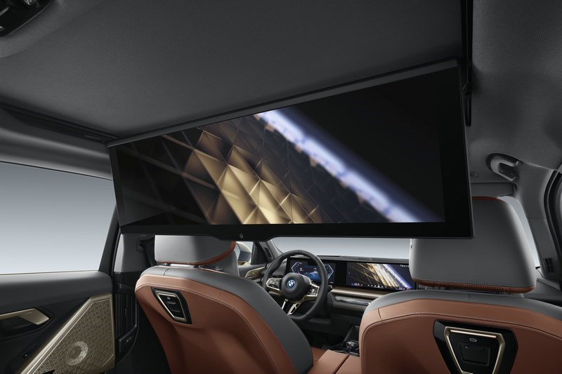 來到后排,最令消費者心動的當屬后排31英寸懸浮式巨屏,擁有8K超高分辨率,坐在后排看視頻、開會、投屏玩游戲等都可以,可以說尊貴享受再上新臺階的同時也進一步強調(diào)出智能豪華的屬性。
