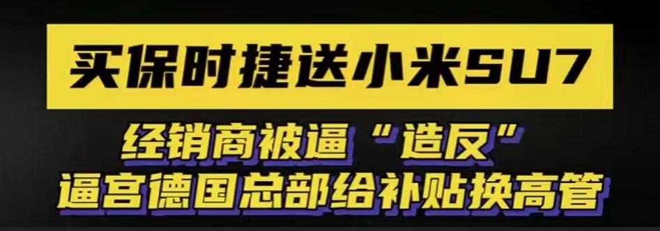 也就有了開頭,買保時捷Taycan送“小米SU7”,經(jīng)銷商被逼“造反”等消息。造反:部分經(jīng)銷商更是停止了進(jìn)車。