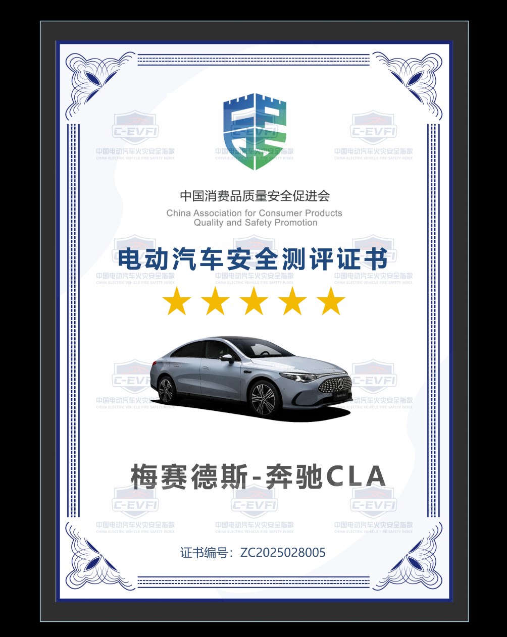 全新純電長軸距CLA采用多級(jí)高壓安全理念,在碰撞時(shí)車輛的高壓系統(tǒng)可以自動(dòng)關(guān)閉,電池包毫秒級(jí)切斷高壓響應(yīng),2秒內(nèi)電壓歸零。日前,全新純電長軸距CLA通過了中國電動(dòng)汽車火災(zāi)安全指數(shù)的測評(píng),獲得五星安全認(rèn)證:在第三方測試中,在單個(gè)電芯熱失控后,整車未起火、未爆炸,動(dòng)力電池?zé)岱€(wěn)定性滿足2026年生效的新國標(biāo)的要求。