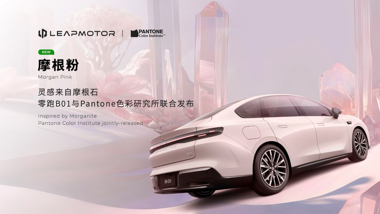 新車推出了8種車身顏色。新亮相的"摩根粉"是零跑與國(guó)際知名色彩機(jī)構(gòu)——Pantone潘通,共同發(fā)布的全新配色,摩根石因含有微量錳元素,金屬漆面在陽(yáng)光下呈現(xiàn)躍動(dòng)的浪漫粉色微光,承載著自信與勇氣的美好寓意。