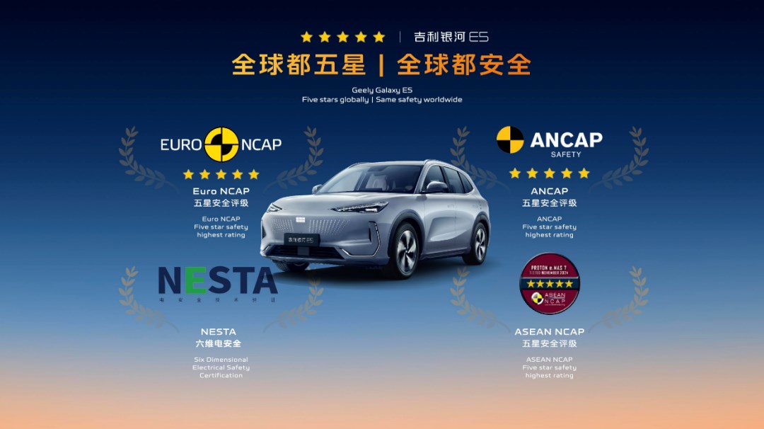 基于神盾電池安全系統(tǒng)帶來的整車安全,吉利銀河E5獲得歐洲Euro NCAP和澳洲ANCAP雙“五星安全”的最高評級,在同類型測試中,綜合成績排名中國品牌第一,做到“全球都五星、全球都安全”。4月16日,吉利銀河E5又在Euro NCAP位于奧地利的實驗室,“加試”了一場超標測試,成為繼沃爾沃、極氪之后,完成50km/h中心柱碰挑戰(zhàn)的15萬級純電車。