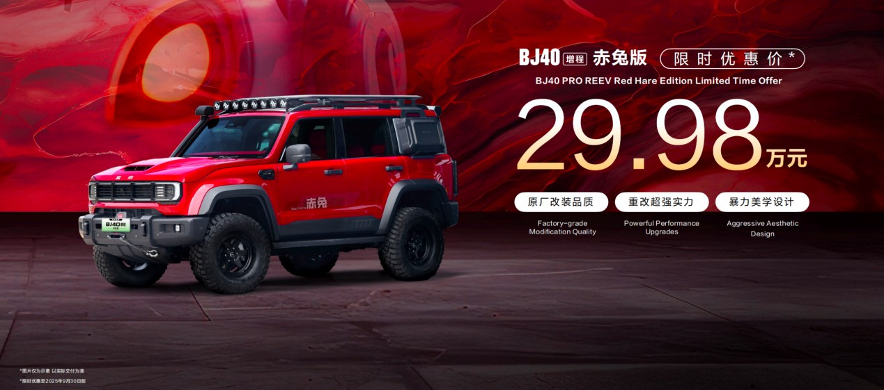 上市以來(lái),BJ40增程進(jìn)階版訂單比例超過(guò)75%。北京越野董事長(zhǎng)王昊宣布,BJ40增程赤兔版正式發(fā)布,實(shí)現(xiàn)顏值、性能、安全三大升級(jí),大幅提升整車視覺(jué)沖擊力、越野性能以及安全防護(hù),改裝提升項(xiàng)價(jià)值超20萬(wàn)元,限時(shí)優(yōu)惠價(jià)為29.98萬(wàn)元(截止至9月30日),即刻可在“悅野圈APP”下單預(yù)存2000元?jiǎng)?chuàng)始基金,預(yù)計(jì)今年四季度正式交付。