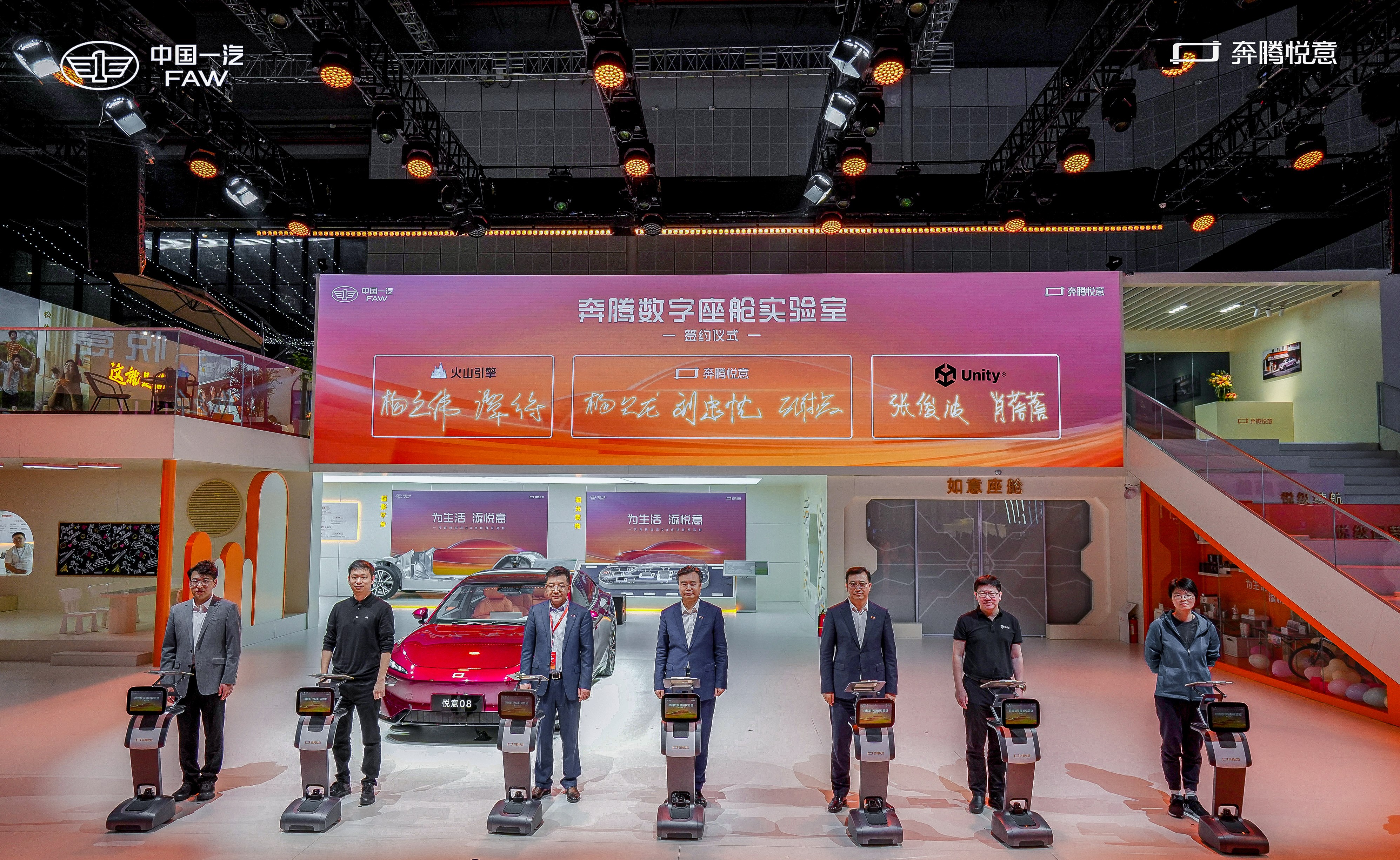 傳承一汽70余年造車底蘊(yùn),基于一汽奔騰自主創(chuàng)新研發(fā)實(shí)力,以及生態(tài)鏈合作伙伴協(xié)同共創(chuàng)的聚合效應(yīng),奔騰悅意不斷豐富技術(shù)儲備、擴(kuò)充未來出行生態(tài)。車展發(fā)布會現(xiàn)場,一汽奔騰還正式與火山引擎和Unity簽約,聯(lián)合成立數(shù)字座艙實(shí)驗室,為進(jìn)一步提升未來出行體驗做足準(zhǔn)備。
