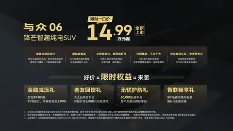 2025年4月21日,金標(biāo)大眾鋒芒智趣純電SUV與眾06(ID. 與眾2025年型款)煥新上市,為用戶帶來近50項(xiàng)軟硬件進(jìn)化并全面升級產(chǎn)品矩陣。與眾06圍繞智能化、娛樂化與個性化,實(shí)力全面提升。新車包括Pure、Pro、Ultra及Max四個版本,充分滿足中國年輕消費(fèi)者對出行體驗(yàn)在品質(zhì)、科技及情感交互等多維度的需求。