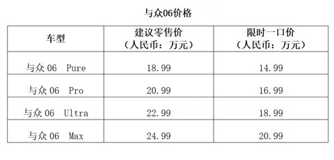 Pure與Pro、Ultra、Max共同組成了與眾06的多元化版本選擇,可以滿足不同用戶的多場景用車需求。用戶可根據(jù)自身預(yù)算與使用習(xí)慣靈活選擇,在確保核心體驗(yàn)的同時,兼享合理配置與優(yōu)質(zhì)價(jià)值。