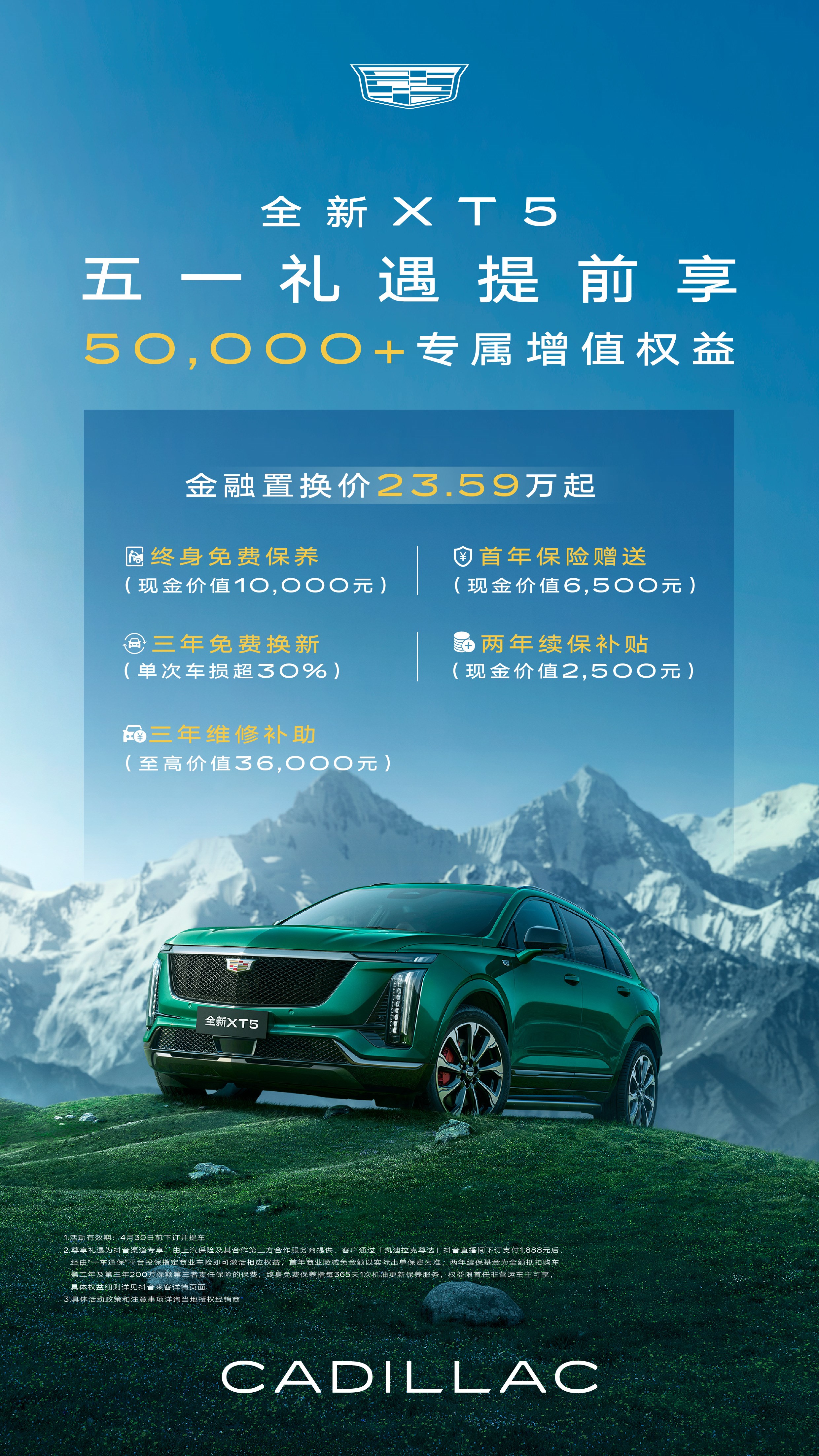 (2025年4月24日)今日,凱迪拉克品牌宣布,全新XT5春日煥季版正式上市,限時(shí)全款一口價(jià)26.59萬(wàn)元起,購(gòu)車(chē)即可尊享春日煥季限定色——墨脫綠。同時(shí),全新XT5春日煥季版將延續(xù)23.59萬(wàn)起金融置換價(jià),還可“五一禮遇提前享”,包含終身免保養(yǎng)、首年保險(xiǎn)贈(zèng)送、三年免費(fèi)換新等在內(nèi),價(jià)值超50,000元的專(zhuān)屬增值權(quán)益,讓消費(fèi)者擁車(chē)終身無(wú)憂,暢享全路況自由。