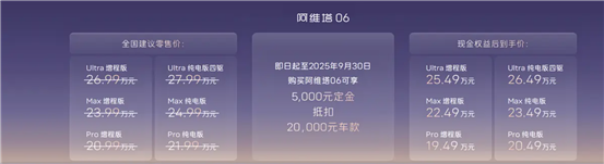 在2025成都車展期間,新款阿維塔06正式上市,此次新車在價格體系、核心配置、動力性能及外觀內(nèi)飾設計等方面均有調(diào)整,進一步豐富了20萬級新能源轎車市場的選擇。新款阿維塔06售價區(qū)間為20.99-27.99萬元,部分車型可選裝特定配置并享受限時優(yōu)惠價。