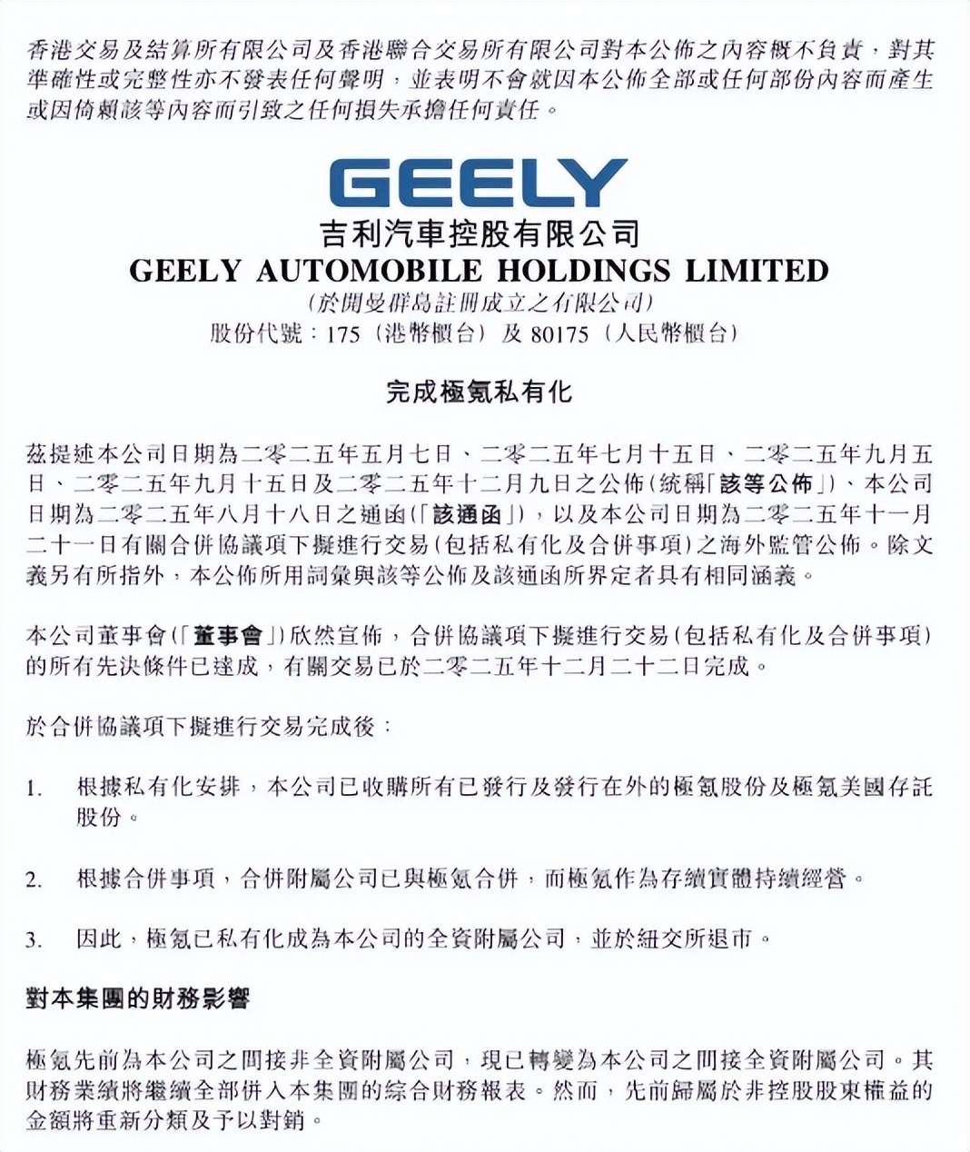 12月22日晚,吉利正式官宣完成對極氪的私有化,極氪成了吉利的全資附屬公司,同時從紐交所摘牌退市。從今年5月提出收購到最終落地,這場歷時7個月的整合,看似是一個品牌的“回歸”,實則藏著中國汽車產(chǎn)業(yè)從“單點突破”轉(zhuǎn)向“體系作戰(zhàn)”的大邏輯。咱們?nèi)锶硕记宄?,這事兒對吉利、對極氪,甚至對整個行業(yè),都不是小事。