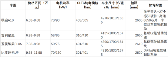 現(xiàn)在 10 萬(wàn)級(jí)純電 SUV 市場(chǎng)的主力選手就是比亞迪元 UP 和吉利星愿,我把三臺(tái)車主核心參數(shù)給大家列出來(lái),一目了然:這么對(duì)比下來(lái)就很清楚了:零跑 A10 比吉利星愿便宜 1 萬(wàn)多,比比亞迪元 UP 便宜 3 萬(wàn)多,但是配置反而更高,尤其是智能化配置,直接比對(duì)手高了一個(gè)量級(jí),性價(jià)比確實(shí)是獨(dú)一檔的存在。就像媒體說(shuō)的那樣:"10 萬(wàn)級(jí)的價(jià)格,敢對(duì)標(biāo) 20 萬(wàn)級(jí)的智能化配置",真不是吹的。